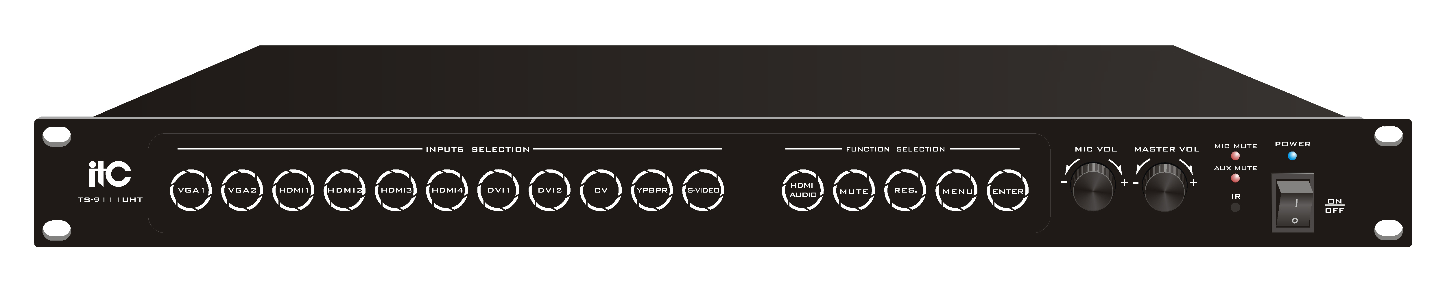 ITC TS-9111UHT Видеокоммутатор 11 входов и 1 выходной коммутатор: 2 VGA 4 HDMI 2 DVI 1 PbPr 1 SVIDEO 1 CVBS, totally 11 video signal inouts,1 HDMI 1 HDBaseT video signal output HDBaseT max support 150m transmission